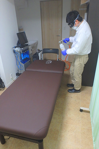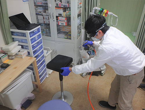 受付は、スタッフ側にも施工。パソコンのキーボード、書類の引き出しなどを重点的に。